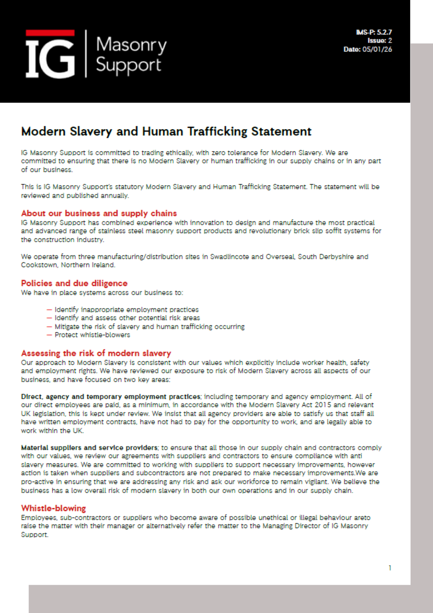 • Modern Slavery and Human Trafficking Statement
